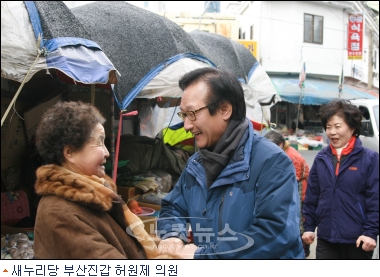 박근혜 바람 효과도 무시할 수 없다. 반면 이제는 야권 인물이 나와 정치를 바꿔야 한다는 변화의 바람도 만만치 않다. 부산진갑은 친박(친박근혜)계 허원제(61) 의원이 재선을 노리며 꾸준히 표밭을 일구고 있다.