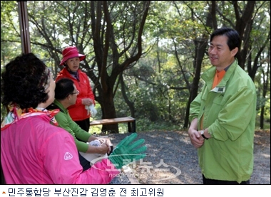 서울 광진갑 재선 의원인 김영춘 전 최고위원은 고향으로 내려와 승부수를 던졌다.