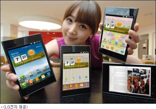 옵티머스 ''Vu:''는 태블릿의 장점인 5인치 대형 화면과 스마트폰의 편리한 이동을 결합한 신개념 전략 제품으로 크고 시원한 대화면을 통해 ''''보는 즐거움''''을 극대화했다는 설명이다.