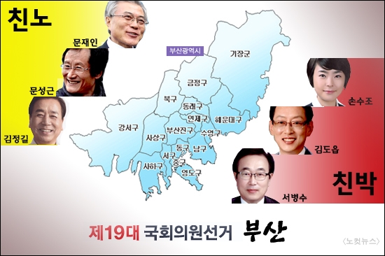 자타가 공인하는 새누리당의 텃밭에서 이른바 ''문·성·길''로 대표되는 친노세력이 일제히 도전장을 내밀면서 ''친(親)노무현 vs 친(親)박근혜''의 구도가 짜여졌다.