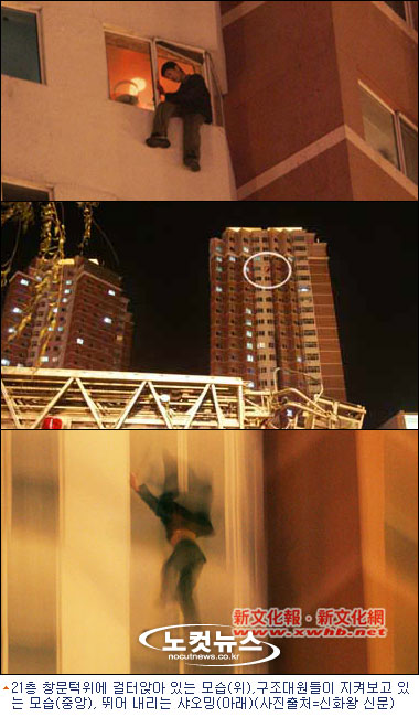 현장에서 구조대원들이 20미터 높이로 방석을 깔아 이 정도의 높이면 목숨은 살릴수 있었지만 4층에 걸려서 심한 상처 입고 불행하게 사망했다.