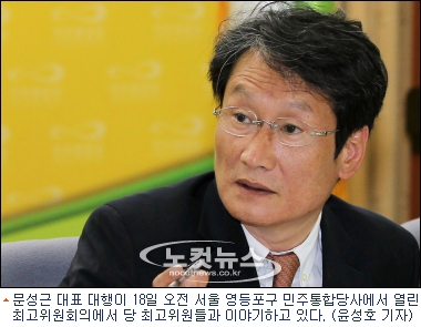 문 대표대행은 18일 오전 서울 영등포 당사에서 열린 최고위원회의에서 "새누리당이 이제 너무나 빨리 립스틱을 지우고 있다. 더이상 국민 속이지 말라고 경고한다"며 이같이 말했다.