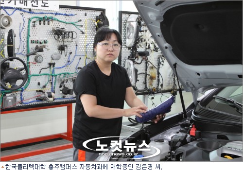 한국폴리텍대학 충주캠퍼스 자동차과에 재학중인 김은경(42) 씨는 대학원에서 고분자공학 석사과정을 졸업하고 결혼 전에는 한국생산기술연구소에서 연구원으로 일했었다.