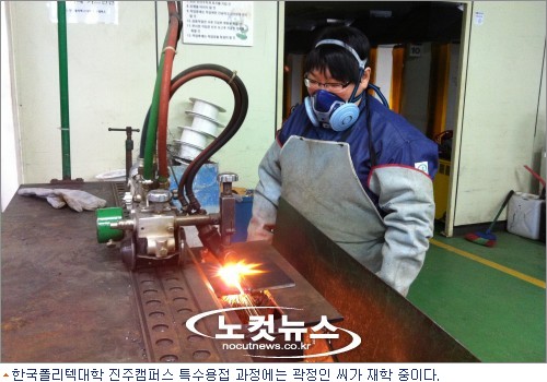 한국폴리텍대학 진주캠퍼스 특수용접 과정에는 여성이 가진 섬세함으로 불과 철에 도전하겠다는 곽정인(31) 씨가 재학 중이다.