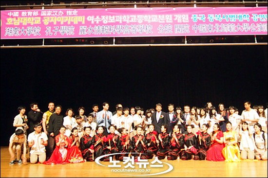 중국 교육부 공자아카데미 총부와 2년여의 협상기간을 거친 끝에 개원된 호남대학교 공자아카데미 여수정보과학고 분원 개원식에는 주한중국대사관 주광주총영사관 천찡센 영사, 뚜스쿤 영사와 호남대학교 박상철 기획처장, 여수정보고 곽영옥 교장 등이 참석했다.