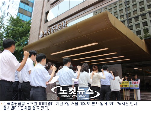 증권금융노조는 지난 5일에도 여의도 본사 앞에서 집회를 열고 기재부 부이사관 출신 부사장 후보와 청와대 비서관 출신 감사 후보에 대한 사측의 철회를 요구했다.