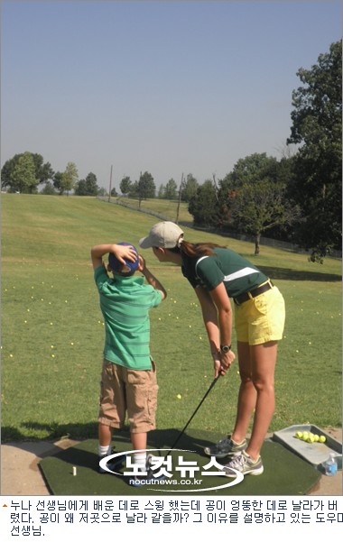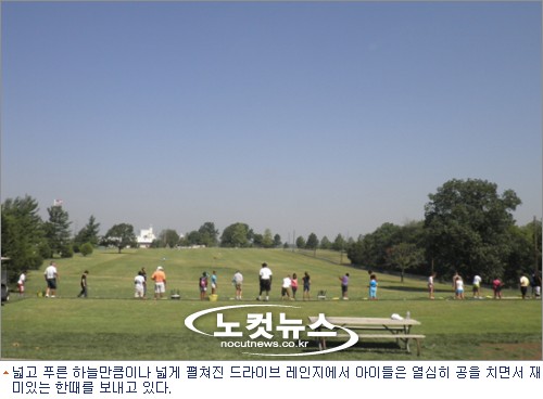 넓은 골프장 잔디 밭에서 야구를 해 본적이 있는가? 아이들은 40분 동안 열심히 골프 스윙을 배우고, 나머지 20분은 골프 클럽을 가지고 하는 야구 게임을 즐기고 있다.