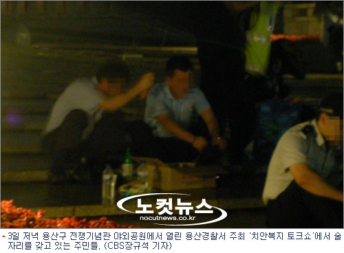 3일 저녁 용산구 전쟁기념관 야외공원에서 열린 용산경찰서 주최 치안복지 토크쇼에서 술자리를 갖고 있는 주민들 (장규석 기자/노컷뉴스)
