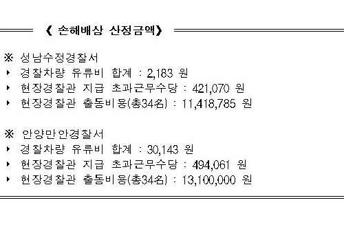 또 장난전화로 경찰관 34명이 출동하는 소동을 빚은 안양 만안경찰서는 장난전화를 건 A(22)씨를 상대로 1천3백만 원의 출동비용을 배상하라는 민사소송까지 낸 상태다