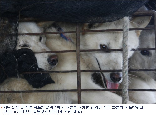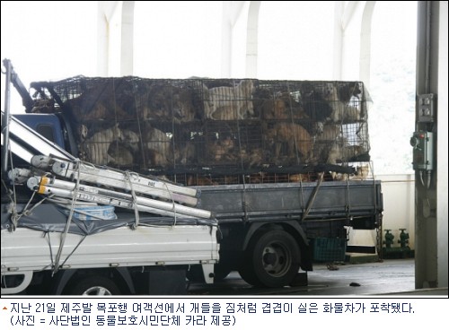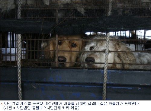 제주도에 따르면 현행 동물보호법 등 관련 법률은 소와 돼지, 닭, 오리에 대해서만 운송세부규정을 둘 뿐, 개 등 다른 가축들은 별도의 운송규정이 없다.