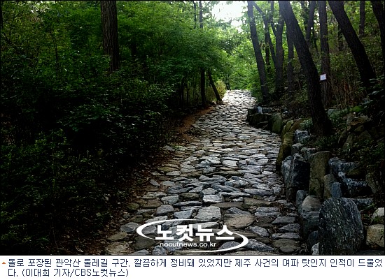 돌로 포장된 관악산 둘레길 구간. 깔끔하게 정비돼 있었지만 제주 사건의 여파 탓인지 인적이 드물었다. (이대희 기자/CBS노컷뉴스)