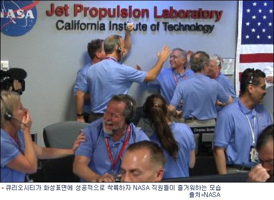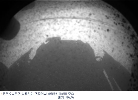화성 탐사 로봇인 큐리오시티는 6일 오후 (우리 시각) 화성 표면에 착륙해 가장 먼저 주변 지역을 촬영해 지구에 전송했다.