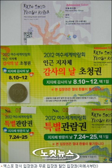 엑스포 정식 입장권과 무료 입장권 할인 입장권(위에서부터)