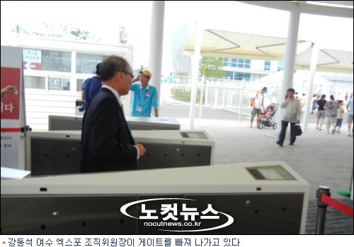 강동석 여수 엑스포 조직위원장이 게이트를 빠져 나가고 있다