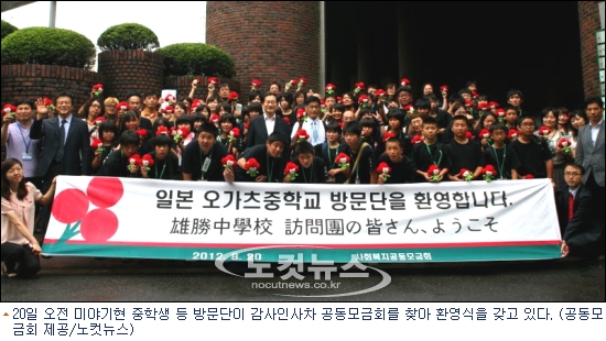 독도영유권 문제를 놓고 한일 관계가 험악해지고 있는 가운데서도, 지난해 일본 동부지역 대지진 당시 국민성금을 지원받은 일본 중학생들이 한국을 찾아 감사 인사를 했다.