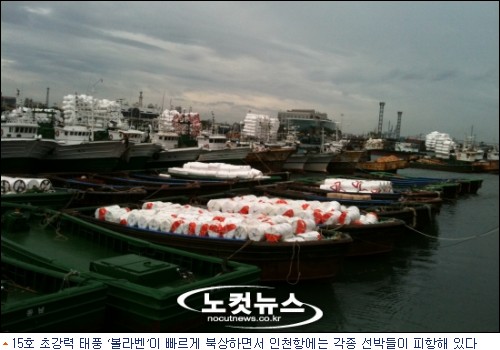 제15호 태풍 `볼라벤''이 28일 만조 때인 오후 2∼3시를 전후로 인천 해역을 통과할 것으로 보여 해안가 저지대의 범람 피해가 우려되고 있다.