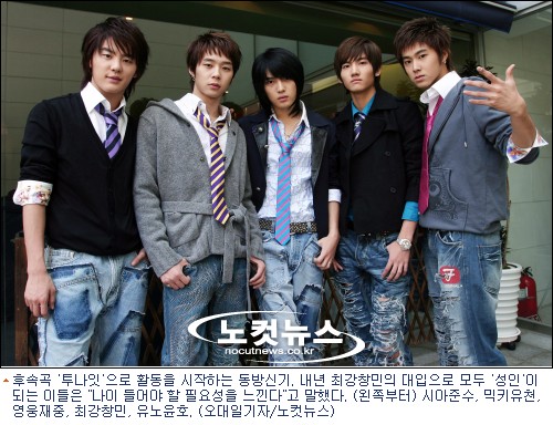 믹키유천은 데뷔 때부터 줄곧 길러온 머리카락을 싹둑 잘랐고, 영웅재중도 검은색으로 머리카락을 염색해 세련미를 더했다. 다 섯 명 모두 넥타이까지 매고 나타났다. "막내 최강창민이 대학에 입학하는 내년이면 모두 성인이 돼요"라고 웃는 이들은 지금 소년에서 청년으로 성장하는 중이다.