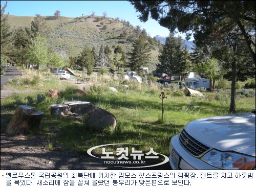 공원 경내로 진입하자 마자 곧바로 메머드 핫 스프링스 캠핑장으로 차를 몰아갔다.