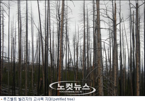 옐로우스톤에서의 첫 목적지는 루즈벨트 빌리지였다. 이 곳은 팔자형 도로 위쪽 써클의 오른쪽 상단에 있다. 메머드 핫 스프링스와 루즈벨트 빌리지 사이의 거리는 대략 29킬로미터 쯤되니 가까운 거리는 아니다.