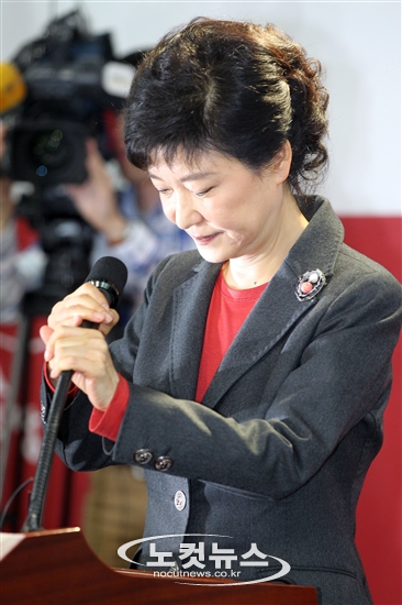 새누리당 박근혜 대선후보가 21일 오후 여의도 당사에서 정수장학회 논란과 관련 입장을 발표하려 하고 있다.