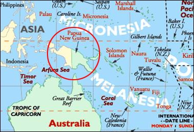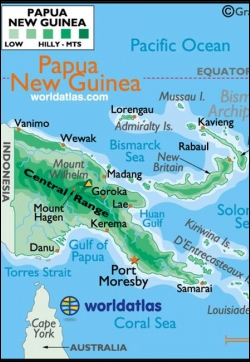 세계에서 두 번째로 큰 남태평양 서쪽 끝 뉴기니섬 동반부에 걸쳐 있는 파푸아뉴기니.