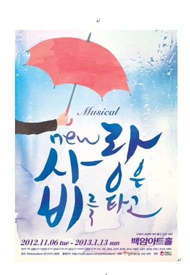 새롭게 변신한 ''사랑은 비를 타고(NEW 사랑비)''는 11월6일~내년 1월13일 백암아트홀에서 공연된다.
