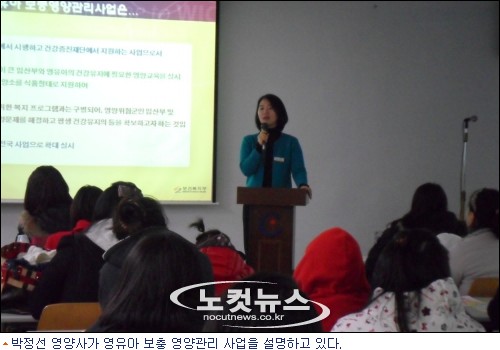 박정선 영양사가 영유아 보충 영양관리 사업을 설명하고 있다