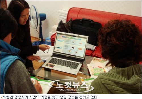 박정선 영양사가 시민의 가정을 찾아 영양 정보를 전하고 있다