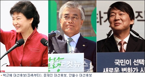 앞서 전날 발표한 조사에서는 박근혜 후보가 42.8%, 문재인 후보가 25.9%, 무소속 안철수 후보가 25.3%였다.