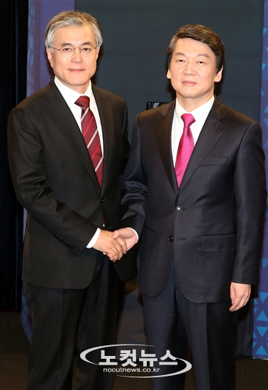 단일화 TV토론회에 앞서 악수하는 문재인-안철수