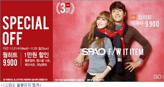 행사 상품과 매장 정보는 스파오 홈페이지와 페이스북(www.facebook.com/SPAOSTORY)을 통해 확인 가능하다.