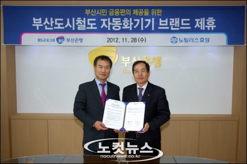 부산은행(은행장 성세환)은 28일 범일동 본점 6층 회의실에서 노틸러스효성㈜(대표이사 손현식)와 ''자동화기기 브랜드 제휴''협약을 체결하고 도시철도 이용 고객에게 현금인출 수수료를 없애기로 했다.