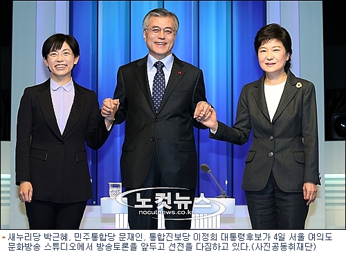 중앙선거관리위원회가 주최하는 18대 대선 첫 TV토론이 4일 저녁 8시부터 2시간동안 진행됐다. 토론에 나선 박근혜 새누리당 후보, 문재인 민주통합당 후보, 이정희 통합진보당 후보는 모두 발언에서부터 강조점이 달랐다.
