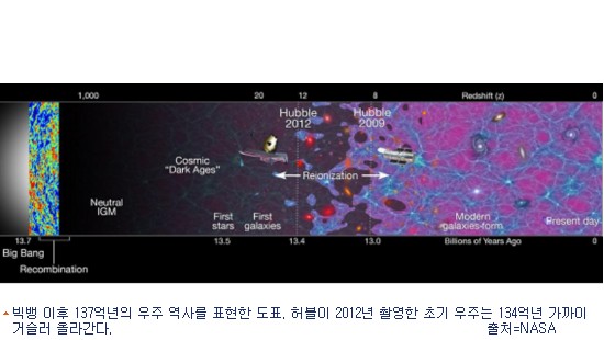 빅뱅으로 시작된 우주의 나이는 137억년으로 추정되고 있어 NASA가 공개한 초기 은하들은 우주 나이의 4%가 채 안됐을 때의 모습이다.