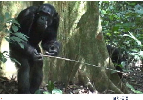 3. 도구를 이용한다침팬지는 인간 외에 다양한 종류의 복잡한 도루를 사용하는 유일한 동물로 알려져 있다. 1960년대 초반 영장류를 연구하던 제인 구달 박사는 침팬지가 언덕에 있는 흰개미들을 유인하기 위해 식물 줄기를 도구로 이용하는 사실을 발견했다. 이후 진보된 도구를 만들어 사용하는 침팬지들의 능력이 속속 밝혀지면서 사람들을 놀라게 해 왔다.