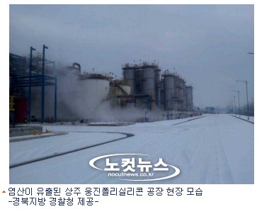 12일 오전 발생한 경북 상주 웅진폴리실리콘 공장 염산 유출 사고로 인한 환경 오염이나 주민 건강 피해 등 2차 피해는 지금까지 나타나지 않은 가운데 유출된 염산은 밤새 모두 회수됐다.