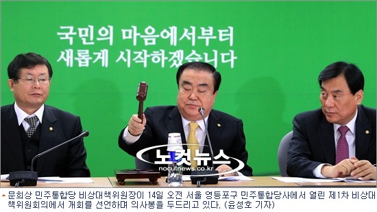 민주통합당 문희상 비대위원장은 "60년 정통 야당이라는 자랑스런 역사만 빼고 모든 것을 바꾸겠다"며 "일체의 기득권과 정치생명에 연연치 않고 사즉생의 비장한 각오로 임하겠다"고 말했다.