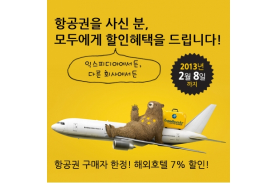 세계 최대 온라인 여행사 익스피디아(www.expedia.co.kr)가 항공권을 구매한 한국 여행객 전원을 대상으로 ''항공권 구매자 한정 호텔 할인 쿠폰 캠페인''을 실시한다.