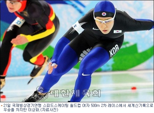 스피드스케이팅 여자 500m 세계신기록을 수립한 이상화(24, 서울시청). 한국 여자 선수로는 첫 쾌거인 데다 기존 기록을 월등하게 앞당긴 값진 결과였다.