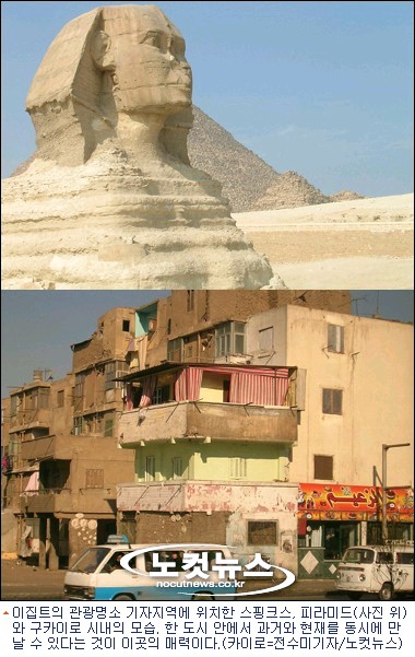 "5000년의 역사와 나일강이 흐르는 카이로에 도착했습니다" 인천국제공항을 떠나 아랍에미레이트의 두바이 국제공항까지 10시간 그리고 또 다시 6시간을 날아 도착한 이집트의 첫 풍경은 그동안 지겹도록 들었던 ''5000년 숨결을 간직한 도시''도 아니었고 ''피라미드와 나일강이 한 눈에 들어오는'' 곳도 아니었다.