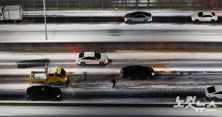 '9시간 넘게 정체' 경기남부, 폭설 관련 신고 2천 건가량 접수 전날부터 이어진 폭설로 경기남부에만 눈 관련 피해 신고가 2천건 가량 접수됐다. 경기남부경찰청에 따르면 4일 오후 5시부터 5일 오전 5시까지 경기남부경찰청 관내 접수 대설 관련 112 신고는 교통 불편 1087건, 제설 요청 732건, 교통사고 83건 등 총 1902건이다. 2025.12.05 09:31