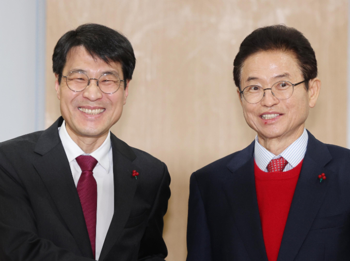대구·경북 꿈꾸던 기회 'TK 통합' 맞손…TK공항도 해결 이철우 경상북도지사와 김정기 대구시장 권한대행이 대구경북 행정통합을 중단없이 추진하기로 합의했다. 20일 이철우 지사와 김정기 권한대행은 경북도청에서 만나 대구경북 행정통합 추진 방향에 대해 논의했다. 2026.01.20 16:10