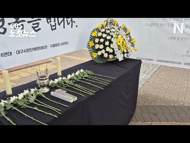 12·29 제주항공 여객기 참사 1주기 맞아 대구서도 분향소 운영 12.29 제주항공 여객기 참사 1주기를 맞아 대구에서도 추모의 발길이 이어졌다. 민주노총 대구지역본부와 대구4.16연대 등은 29일 오전 10시 대구 동성로 CGV대구한일 앞에 12.29 무안공항 제주항공 여객기 참사 추모 분향소를 설치했다. 2025.12.29 14:20