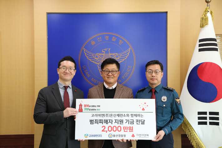 고려아연㈜ 온산제련소, 범죄피해자 지원 2천만원 전달 고려아연㈜ 온산제련소는 2일 울산경찰청에 범죄피해자 지원을 위해 써 달라며 사회공헌기금 2천만 원을 전달했다. 이 기금은 울산사회복지공동모금회 지정 기탁돼 각종 범죄로 인해 어려움을 겪고 있는 피해자들에게 생계비와 의료비, 취업 훈련비로 사용된다. 2025.12.02 16:46