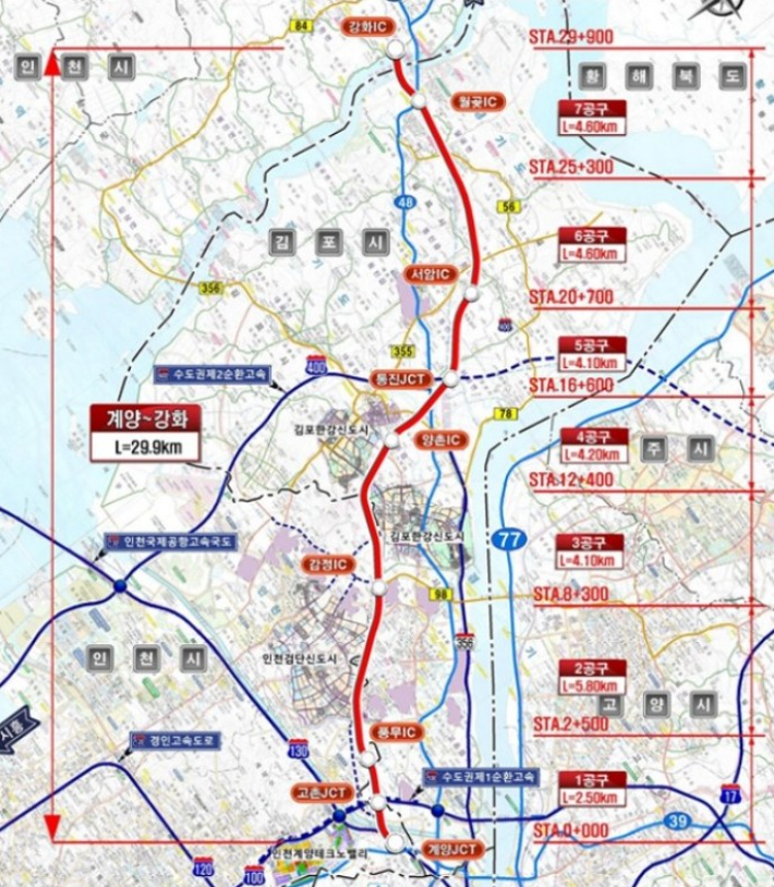 김포시 "계양~강화 고속道 사업 본격화" 경기 김포시를 관통해 강화로 이어지는 계양~강화 고속도로 건설사업이 본격화한다. 13일 김포시는 계양~강화 고속도로 건설사업 실시설계가 완료됐다고 밝혔다. 2026.01.13 19:50