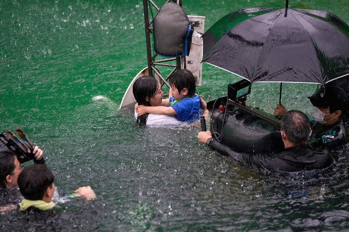 물에 잠긴 세상…질문 던진 '대홍수' 재평가 받을까[왓더OTT] 쏟아진 폭우로 아파트가 순식간에 잠기기 시작한다. 창문 틈으로 밀려드는 빗물을 확인한 인공지능 연구원 구안나(김다미)는 아들 신자인(권은성)을 업고 황급히 집을 빠져나온다. 2025.12.29 05:00