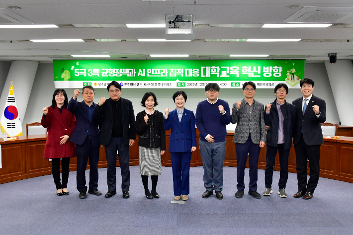 명진 광주시의원, '5극 3특 대응 대학교육 혁신방향' 토론회 개최 5극 3특 국가균형발전 전략에 대응한 지역 대학교육 혁신 방향을 모색하는 정책토론회가 광주에서 열렸다. 수도권 집중 구조를 완화하고 지역 주도 성장체계를 구축하기 위한 논의가 대학 교육 혁신과 맞물리며 본격화하고 있다. 2025.12.18 16:05