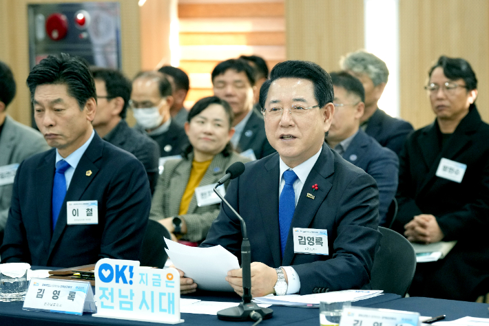 김영록 전남지사 "완도를 해양치유·해조류산업의 글로벌 거점으로" 천혜의 청정바다를 활용해 완도를 해양치유와 해조류산업의 글로벌 혁신 거점으로 도약시키겠다는 지역 발전 청사진이 제시됐다. 전남도는 18일 오후 완도문화예술의전당 문화홀에서 김영록 전남도지사, 신우철 완도군수, 이철 전남도의회 부의장, 신의준 전남도의원, 김양훈 완도군의회 의장과 군민 등 120여명이 참석한 가운데 완도군 정책비전투어를 개최했다. 2025.12.18 16:07