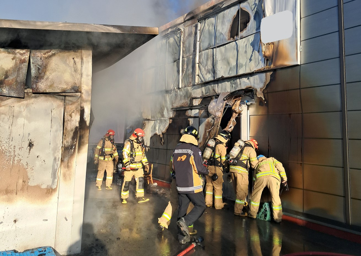 울진 육가공업체·경주 기계 공장서 화재…인명피해 없어 지난 26일 오후 3시 35분쯤 경북 울진군 울진읍 읍남리의 한 육가공업체 창고에서 화재가 발생했다. 이 불로 870㎡ 규모의 공장 건물이 반쯤 불에 타고 54㎡ 규모의 창고 1동이 전소됐다. 2025.12.27 13:20