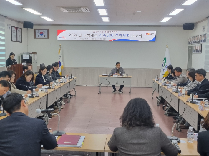 마산회원구, 지역경제 활력 제고 위한 신속집행 총력 창원특례시 마산회원구가 지난 9일 11개 부서와 12개 읍·동이 참석한 가운데 2026년 병오년 첫 '확대간부회의'를 열고 신속집행 목표 달성을 위한 추진계획 보고회를 진행했다. 이날 회의에서는 신년 인사와 함께 당면 현안을 공유하고 주요 사업의 세부 추진계획을 점검하며 지역경제 활력 제고를 위한 효율적인 예산 집행 대책을 논의했다. 2026.01.11 20:06